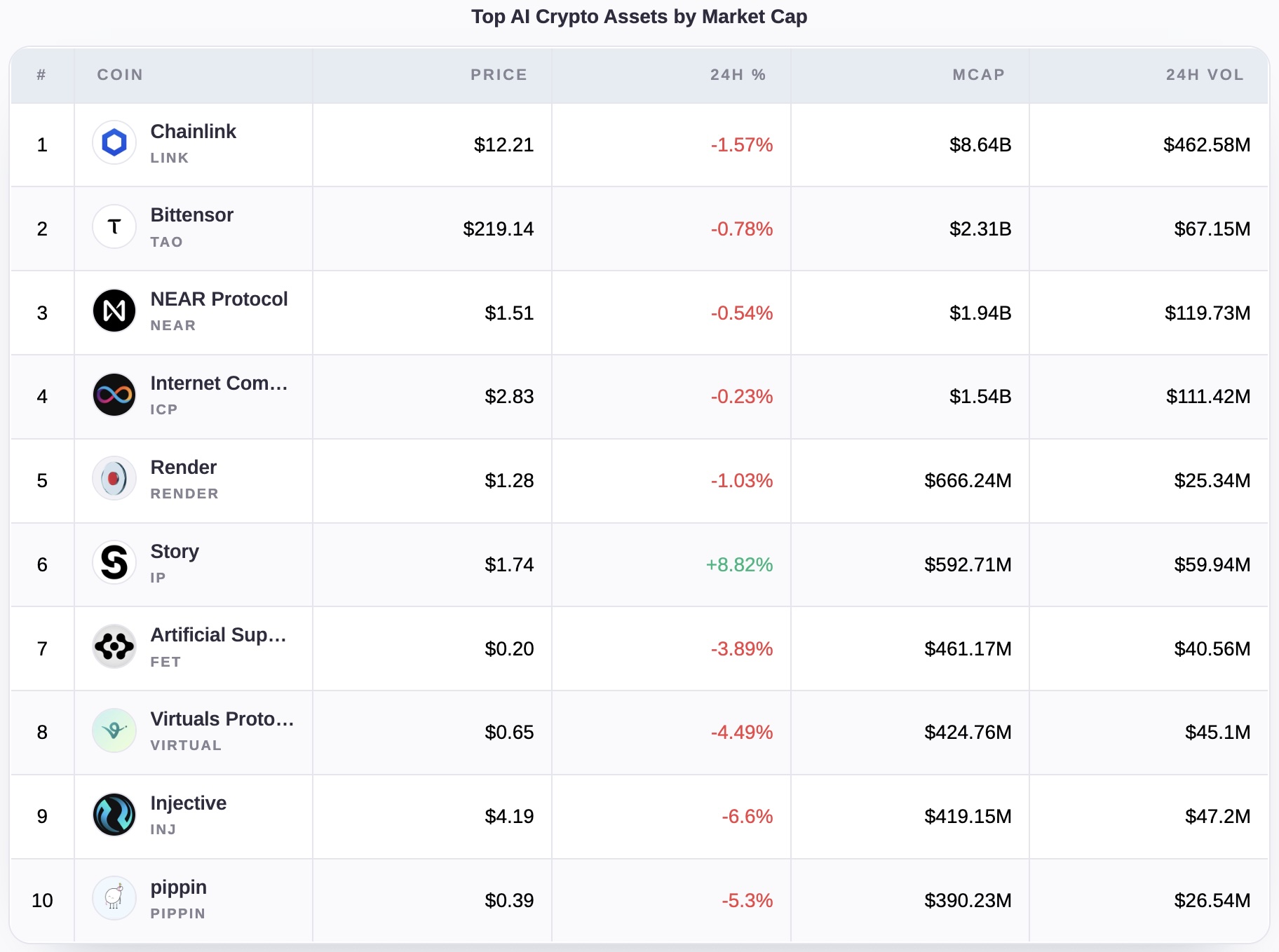 Các tài sản tiền điện tử hàng đầu liên quan đến AI theo vốn hóa thị trường