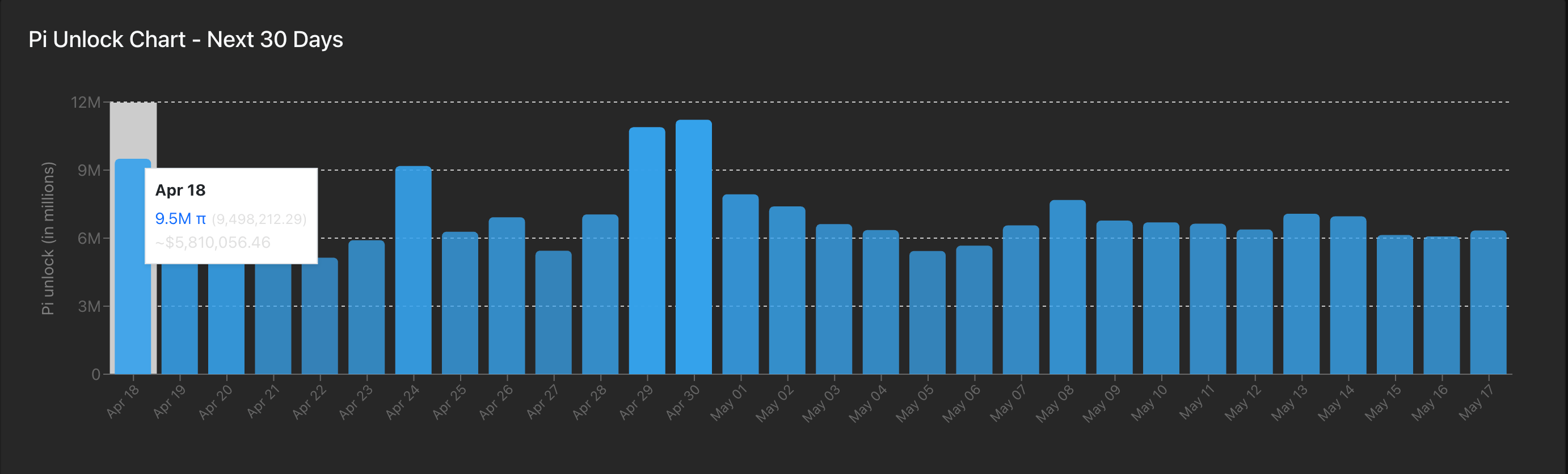 Theo PiScan, 9,5 triệu token (trị giá 5,76 triệu đô la) sẽ được phát hành vào hôm nay. Đây là một phần của lịch trình tổng thể, theo đó hơn 1,56 tỷ token PI sẽ được phát hành trong 12 tháng tới.