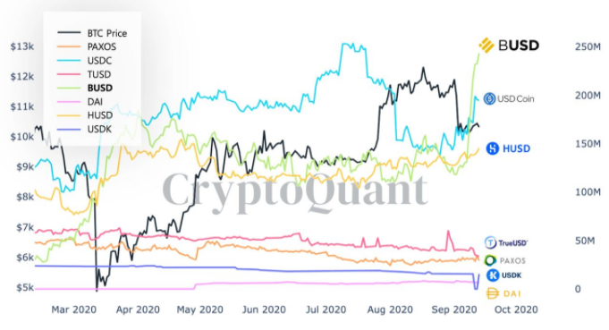 BUSD của Binance dựa trên ERC-20 được ra mắt vào năm 2019 với sự hợp tác cùng Paxos. Kể từ đó, BUSD đã liên tục đạt được thanh khoản khi khối lượng của nó tăng lên và gần đây đã vượt qua USDC vào ngày 4 tháng 9.