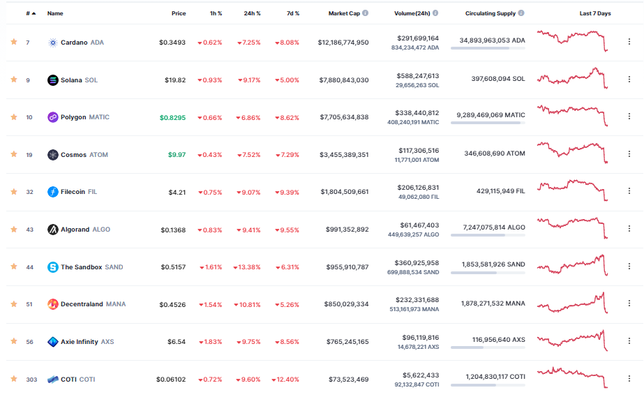 SOL, token gốc của Solana, đã mất tới 8% sau tin tức về vụ kiện của Binance. MATIC của Polygon và ADA của Cardano đều giảm khoảng 7%. Các token còn lại trong danh sách bị cáo buộc cũng đang giảm 2 chữ số.