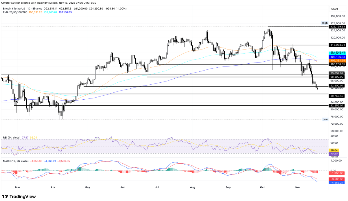 Thị trường tiền điện tử “chảy máu” khi Bitcoin rơi xuống 91.000 USD