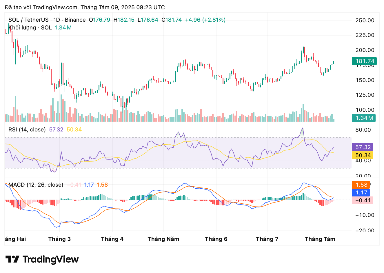 Dù không có tin tích cực từ BlackRock, biểu đồ Solana (SOL) vẫn giữ nguyên trạng thái tăng giá.