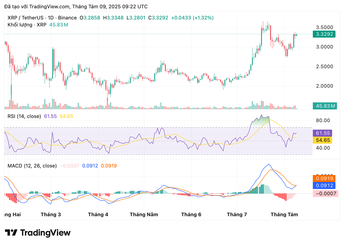- EMA: Tiếp tục đóng vai trò hỗ trợ, cho thấy xu hướng chưa bị phá vỡ.
