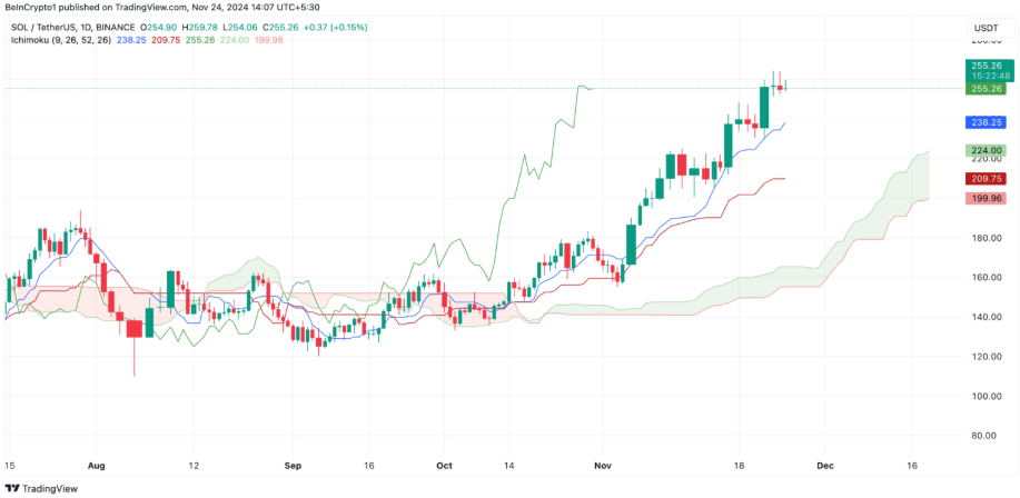 Solana (SOL) đã đạt mức đỉnh kỷ lục mới tại $264,39 trong phiên giao dịch ngày 23 tháng 11. Kể từ đó, SOL đã chứng kiến mức điều chỉnh 3%, đưa altcoin này trở về quanh mức $250 vào thời điểm hiện tại.