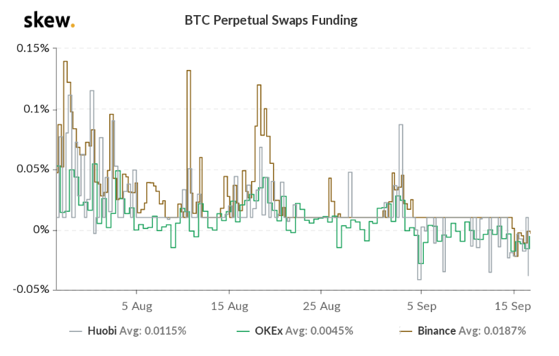 Dữ liệu ở trên cho thấy một khoảnh khắc lạc quan ngắn ngủi khi funding rate chuyển sang dương vào ngày 2 tháng 9 trước khi giảm xuống dưới $ 11.000. Kể từ đó, chỉ báo này chuyển sang âm và không có dấu hiệu tăng trở lại.