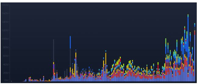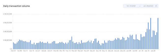 Phần lớn tổng khối lượng được ghi lại trên Synapse đã đến từ đầu năm 2022, khi giao thức chứng kiến khối lượng xử lý chạm mức ATH là 157,8 triệu USD vào ngày 23 tháng 1.