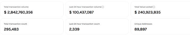 Tổng cộng 89.897 địa chỉ duy nhất đã tương tác với giao thức kể từ khi thành lập và đã thực hiện tổng khối lượng giao dịch trị giá 2,842 tỷ USD.