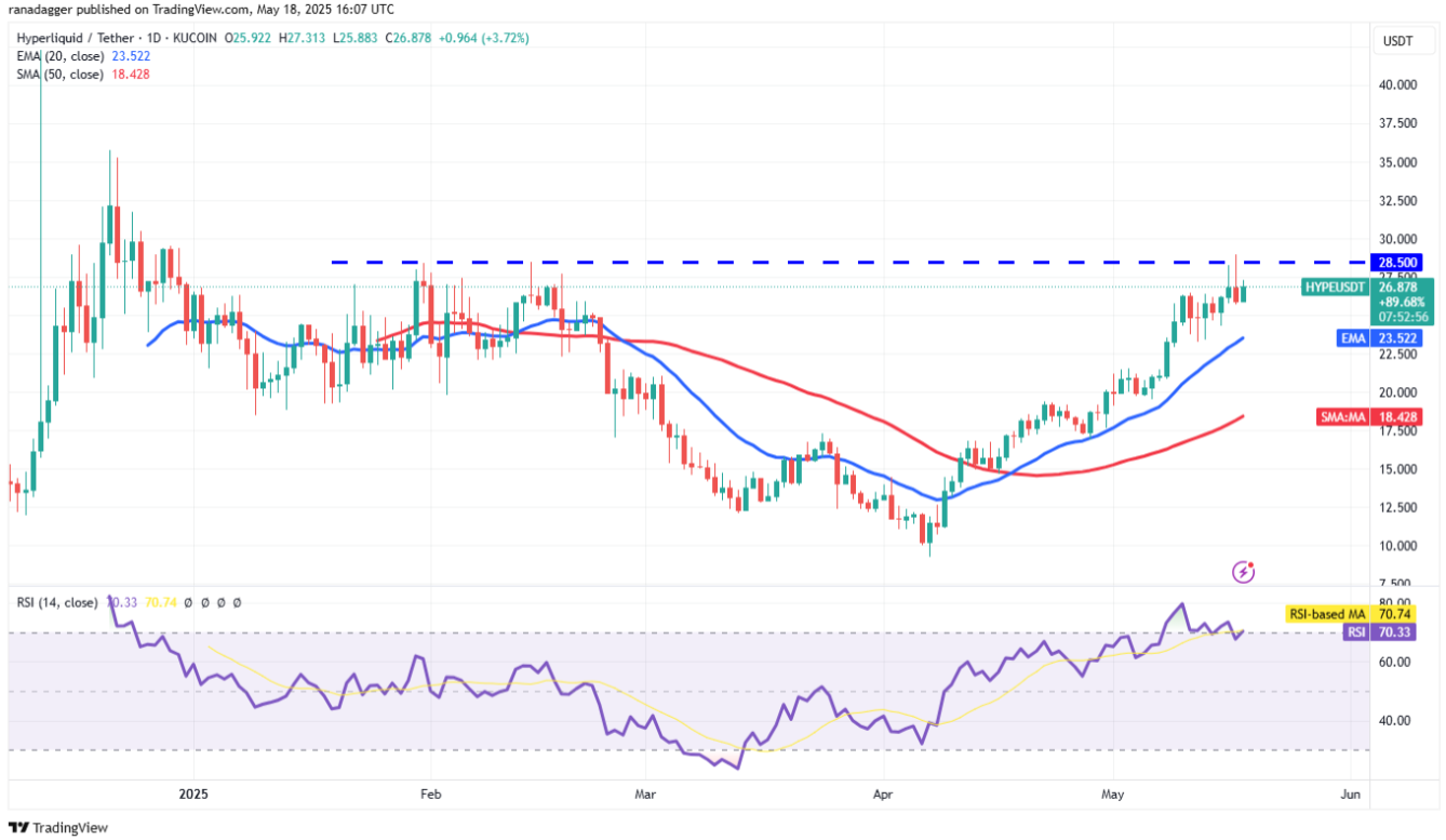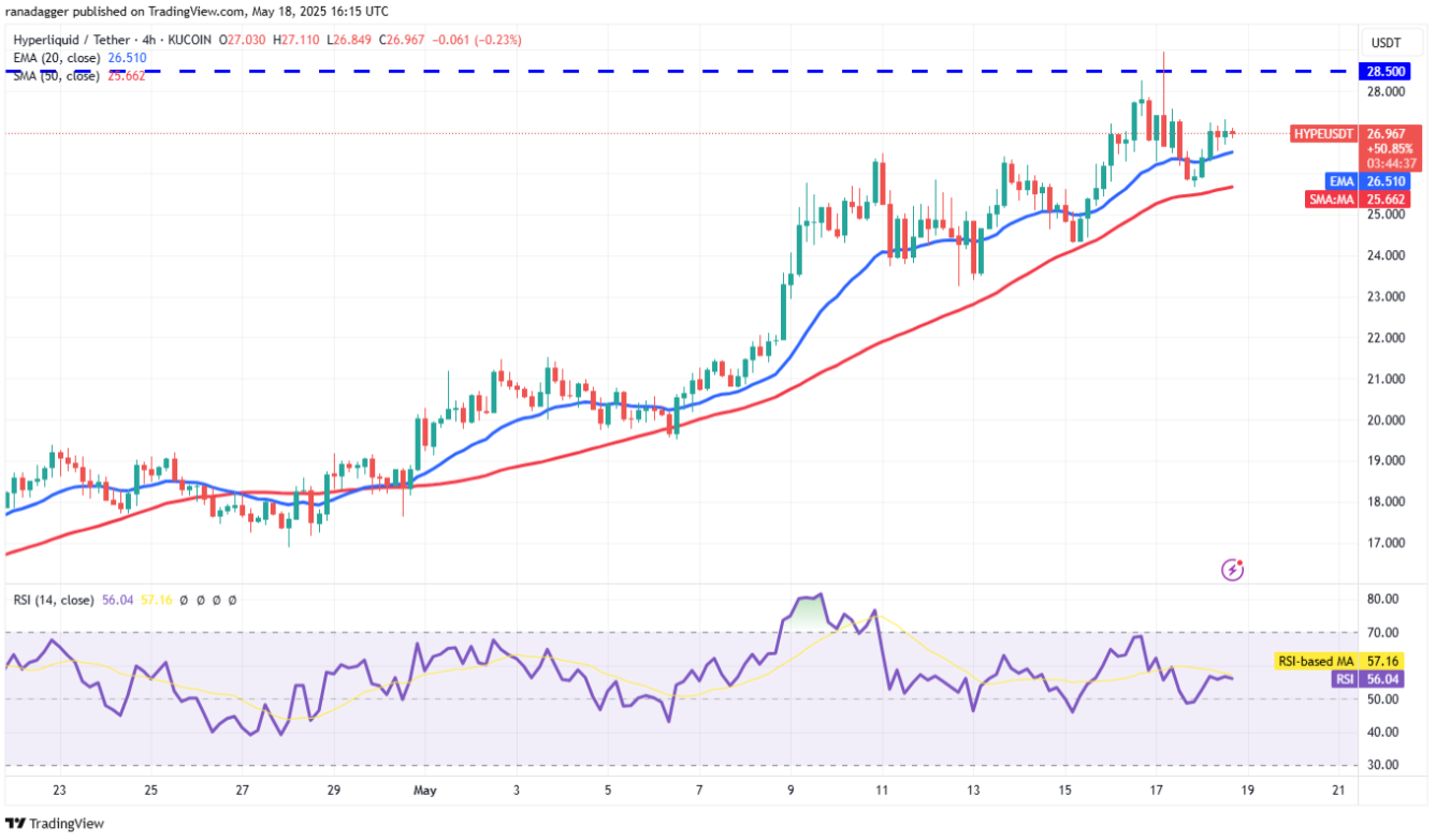 Hyperliquid (HYPE) đang gặp kháng cự tại mức $28,50, nhưng điểm tích cực là phe bò vẫn chưa nhường nhiều đất cho phe gấu.