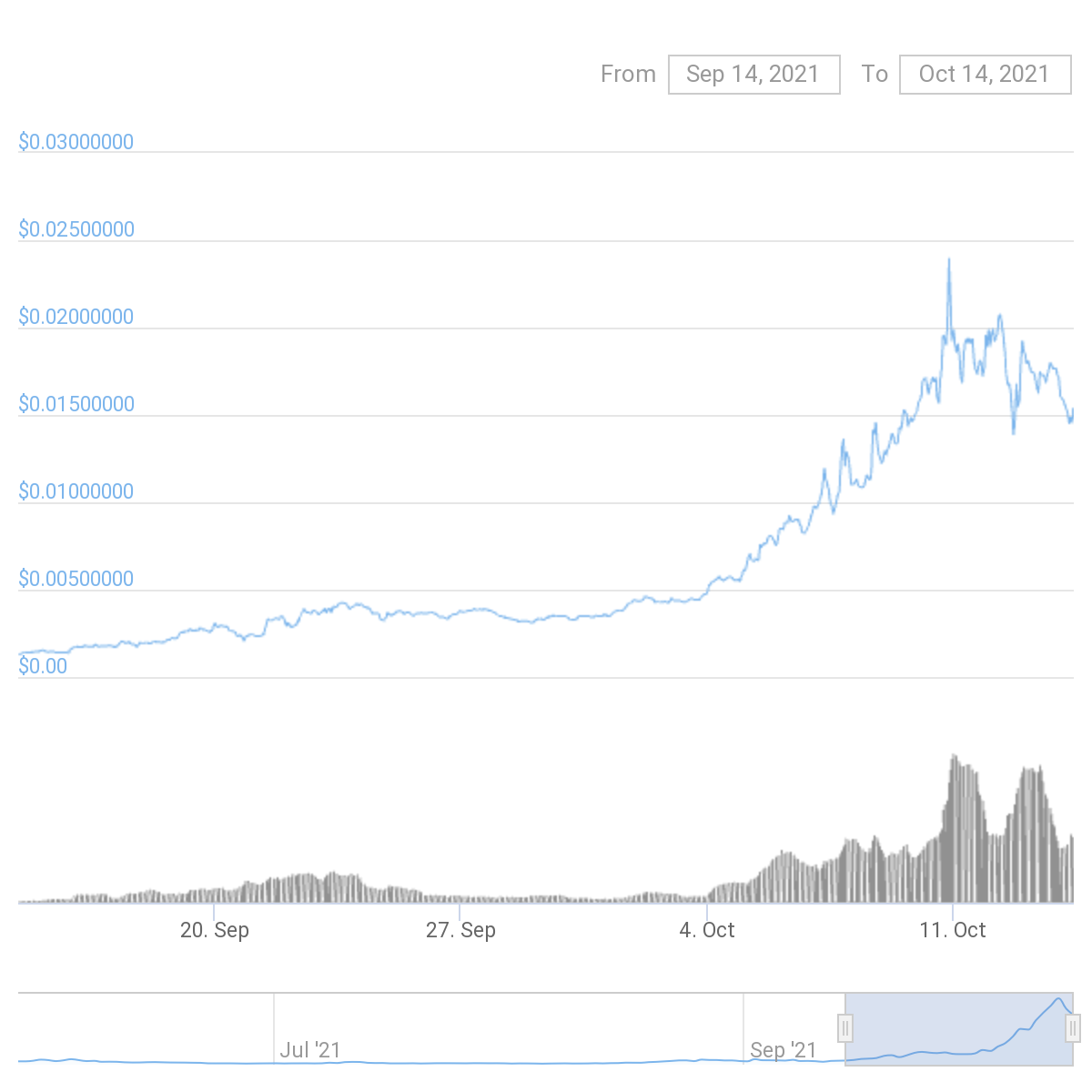 Spell Token (SPELL) đạt mức cao nhất mọi thời đại là 0,024 đô la vào Chủ nhật và giảm 36% so với ATH vào thời điểm viết bài. Trong 30 ngày qua, SPELL đã tăng 1107% và tự hào có vốn hóa thị trường hơn 995 triệu đô la.