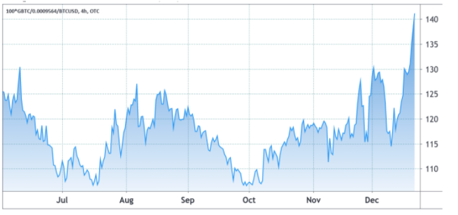 Phí bảo hiểm Bitcoin Trust theo thang độ xám | Nguồn: TradingView và Grayscale