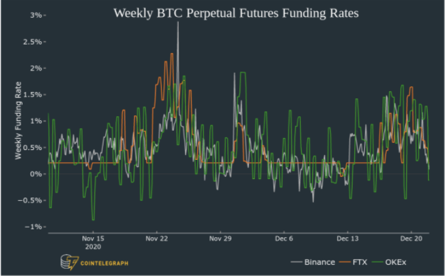 Hãy chú ý làm thế nào, mặc dù Bitcoin suy yếu vào ngày 21 tháng 12, funding rate hàng tuần vẫn dương. Dữ liệu này chỉ ra rằng cả trader Long và Short đều sử dụng đòn bẩy gần như giống nhau.