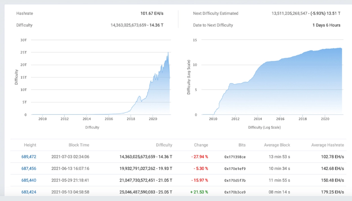 Hai tuần trước, mạng Bitcoin đã chứng kiến độ khó giảm lớn nhất từ trước đến nay và một đợt giảm độ khó khác dự kiến sẽ xảy ra vào cuối tuần này. Sử dụng hashrate trung bình của ngày hôm nay, thống kê cho thấy mức giảm sẽ ít hơn 6%, đưa độ khó hiện tại là 14,36 nghìn tỷ xuống 13,5 nghìn tỷ.