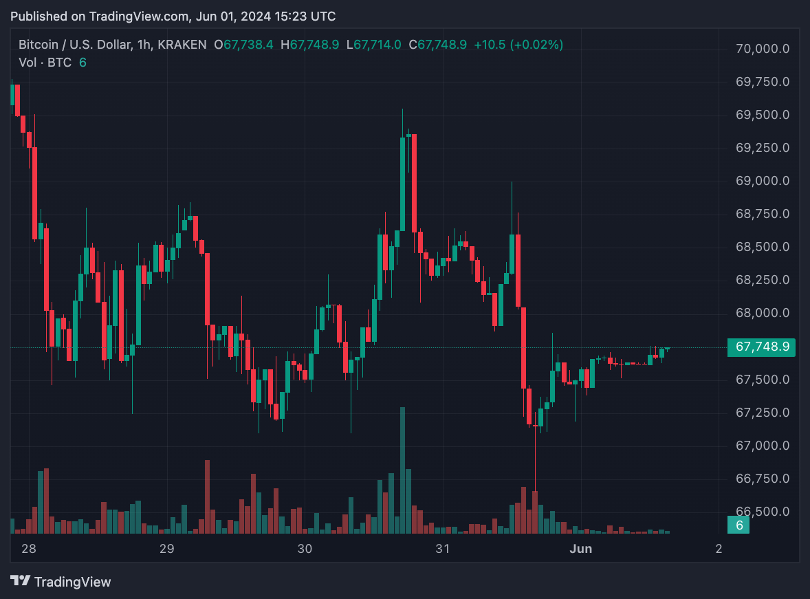 Biểu đồ giá Bitcoin 1 giờ. Nguồn: TradingView