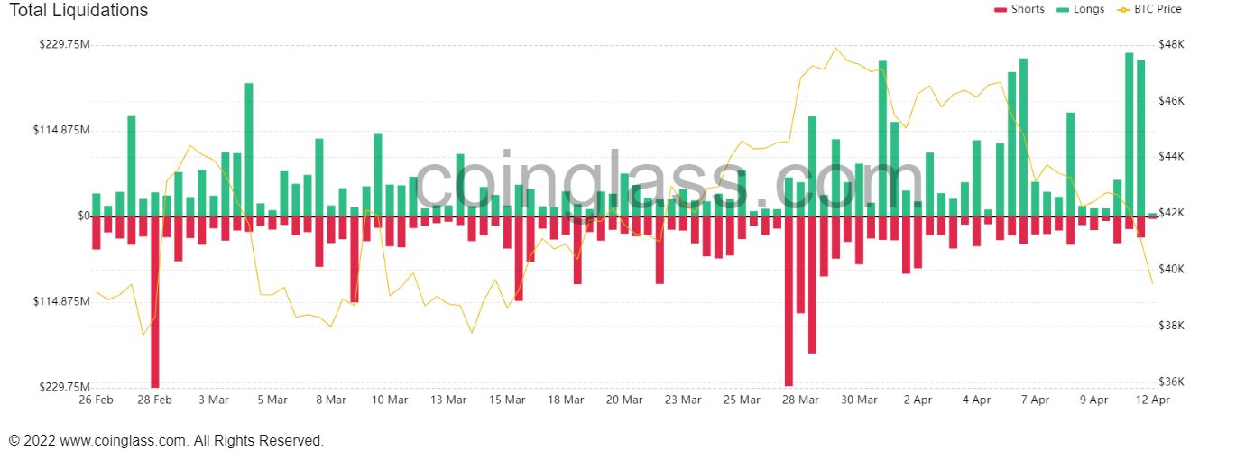 Thị trường tiền điện tử diễn biến theo chiều hướng xấu hơn vào ngày 11 tháng 4 sau những lo ngại liên quan đến lạm phát gia tăng, khả năng Cục Dự trữ Liên bang Hoa Kỳ tăng thêm lãi suất và lo sợ về tình trạng thiếu lương thực toàn cầu, những điều này đã dẫn đến sự suy yếu lan rộng trên các thị trường tài chính toàn cầu.