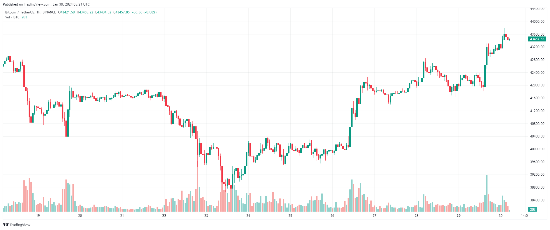 Trong một tuần quan trọng với chính sách kinh tế vĩ mô của Hoa Kỳ, hành động giá BTC hiện đã vọt khỏi khu vực $ 43.000 vào thời điểm hiện tại.