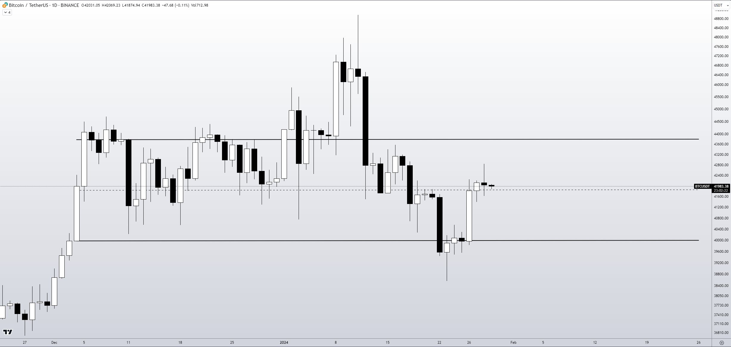 Tuy nhiên, khi phân tích hiện trạng, trader Skew đã thấy cơ sở lạc quan thận trọng trên các khung thời gian thấp hơn. Trong bản tóm tắt trên nền tảng truyền thông X, ông đã đánh dấu khu vực quanh $ 42.000 là vùng cần theo dõi.