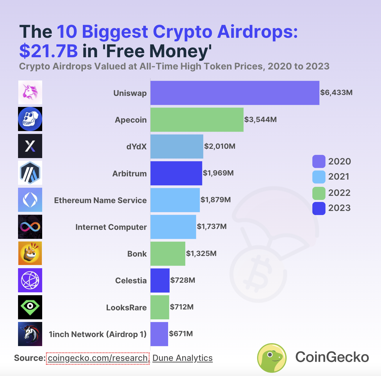 Các đợt airdrop tiền điện tử lớn nhất xảy ra khi nào?