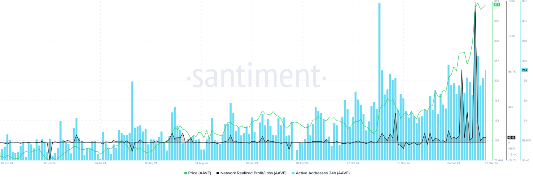 Các chỉ báo on-chain cho thấy hoạt động của AAVE đang gia tăng khi các trader chốt lời. Tuy nhiên, đà tăng giá của AAVE không hề bị cản trở bởi hoạt động chốt lời này, khi token DeFi tiếp tục tăng gần 4% trong ngày.
