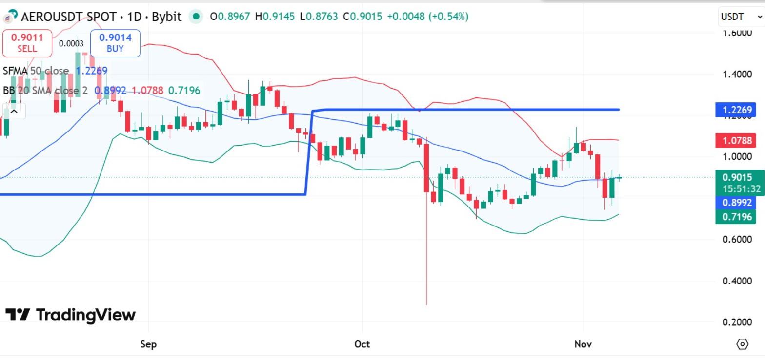 Tại thời điểm viết bài, AERO đang được giao dịch quanh mức 0,901 USD, ghi nhận mức tăng 10,43% trong 24 giờ qua – một cú lội ngược dòng ấn tượng sau chuỗi ngày giảm giá kéo dài suốt một tuần.