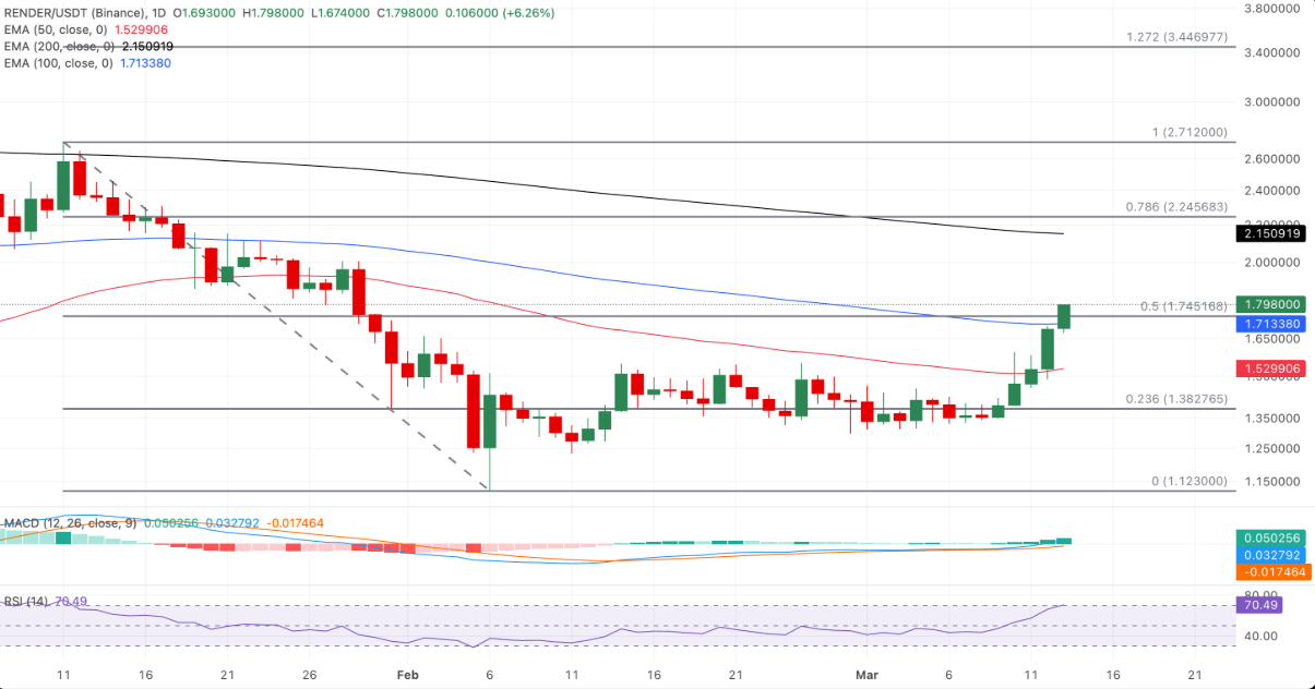 Render cho thấy triển vọng tăng giá, hướng tới 2 USD
