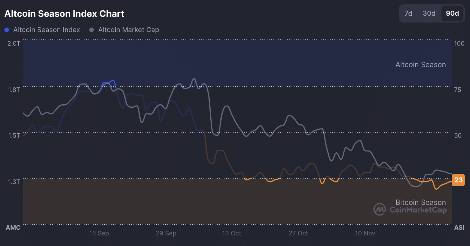 Thị trường altcoin đã hứng chịu cú “đấm” nặng nề nhất vào ngày 7/10, kéo tổng vốn hóa lao dốc sâu trên biểu đồ. Theo dữ liệu vốn hóa altcoin từ TradingView — không bao gồm stablecoin, Bitcoin (BTC) và Ethereum (ETH) — toàn thị trường đã “bốc hơi” tổng cộng 384 tỷ USD kể từ đỉnh cho đến ngày 21/11.