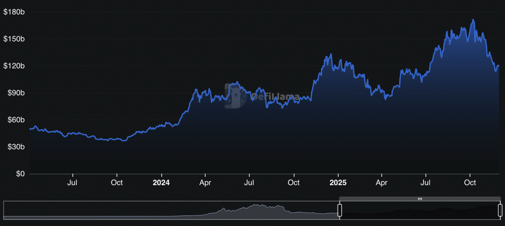 Ở thời điểm hiện tại, thị trường chung đã ghi nhận một nhịp hồi phục nhẹ, với TVL đạt khoảng 119,09 tỷ USD. Tuy nhiên, việc nguồn cung stablecoin tiếp tục tăng trên nhiều blockchain cho thấy không ít nhà đầu tư vẫn đang đứng ngoài quan sát, ưu tiên nắm giữ stablecoin thay vì mạnh tay phân bổ sang altcoin.