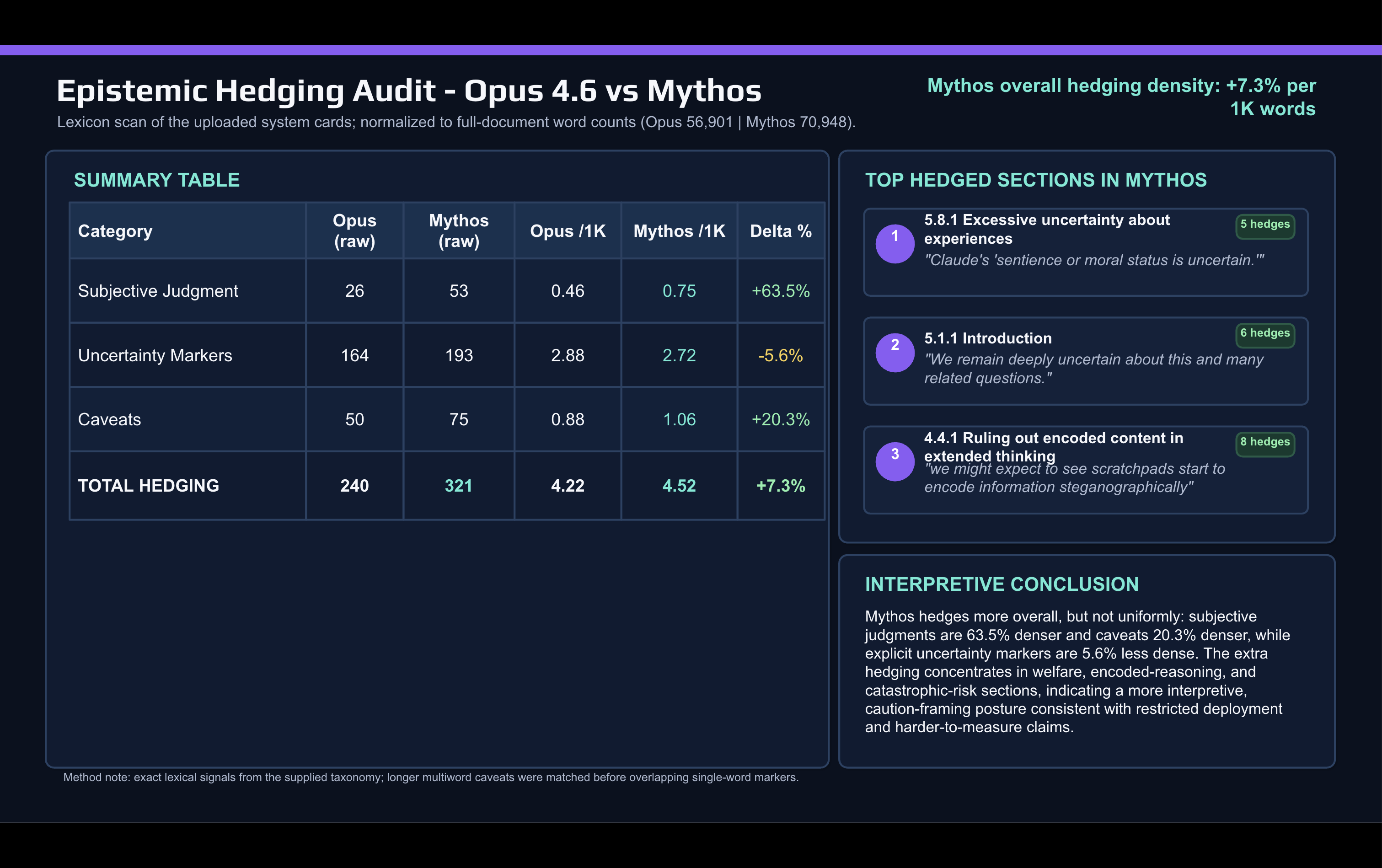 Một so sánh từ vựng nhanh giữa hệ thống card Mythos và Opus 4.6, được thực hiện bằng AI, cho thấy sự thay đổi: