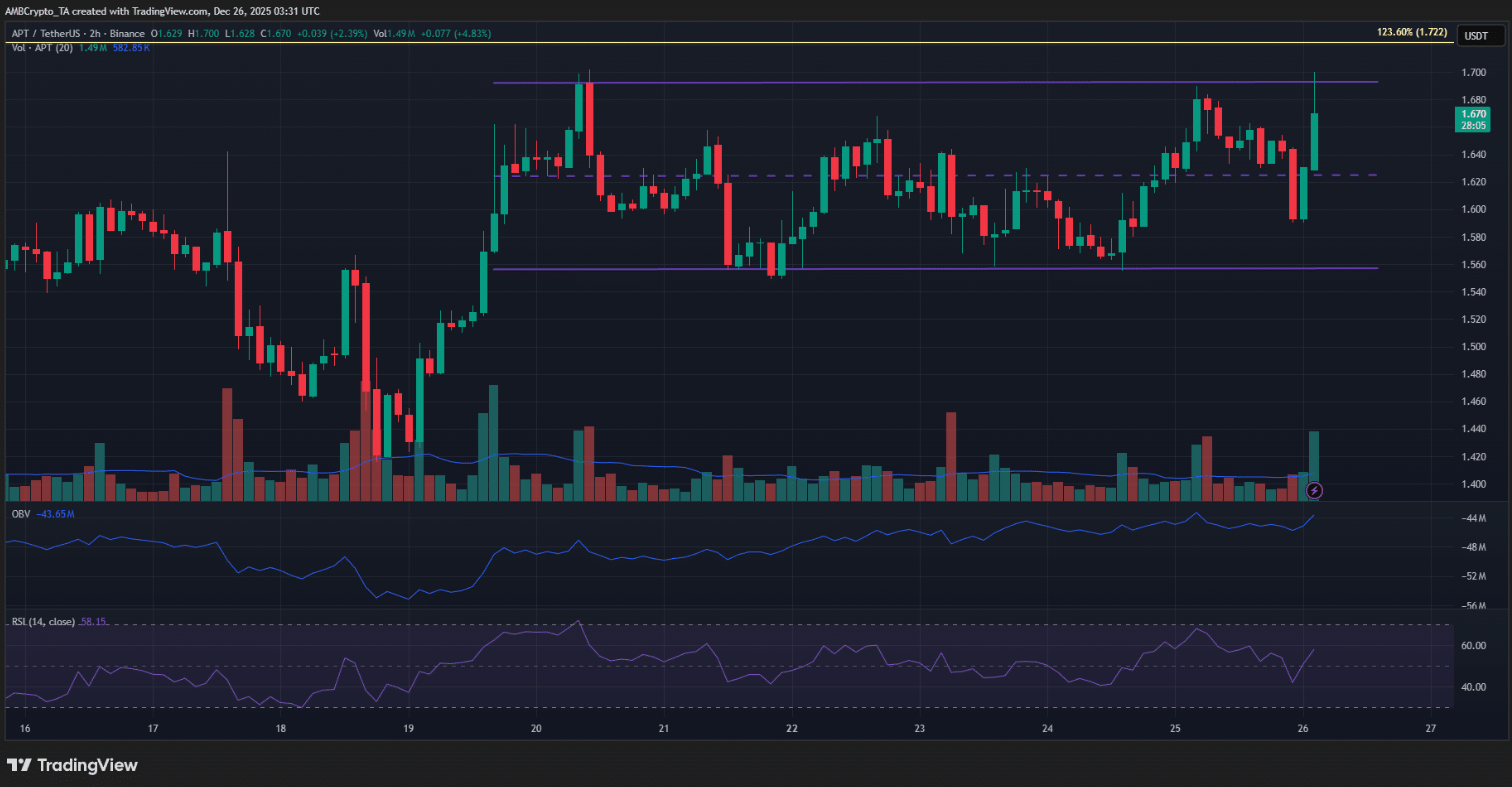 Aptos (APT) có cơ hội bứt phá lên mốc 2 USD trước khi năm 2025 khép lại?