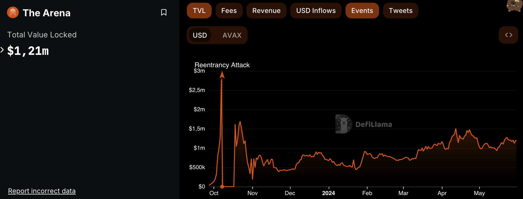 Tính đến thời điểm viết bài, tổng giá trị bị khóa (TVL) của Arena là hơn 33.242 AVAX, trị giá khoảng 1,2 triệu đô la, tương đương 1/10 tài sản bị khóa trên Friend.tech, có TVL là 11,2 triệu đô la.