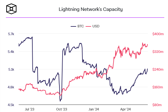 Theo dữ liệu của The Block, Lightning Network đang dần trở nên quá tải nhưng hiện bị giới hạn ở công suất 5.100 BTC (350 triệu USD).