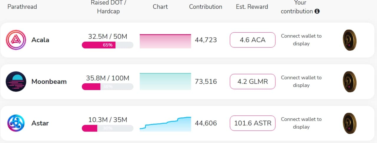 Như vậy, tính đến thời điểm hiện tại đã có 3 parachain hiện diện trên mạng Polkadot, bao gồm: Acala (chiến thắng với 32.5M DOT), Moonbeam (chiến thắng với 35.8M DOT) và Astar.
