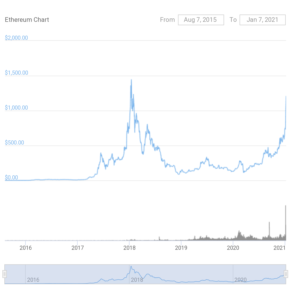 Giá ETH đạt đỉnh 1.223 đô la trên Binance, mức cao nhất kể từ tháng 1 năm 2018. Vào thời điểm báo chí, ETH đã tăng 12% và giao dịch trên 1.200 đô la. Tiền điện tử đã tăng hơn 60% trong tuần qua, nâng tổng vốn hóa thị trường của nó lên 138 tỷ đô la.