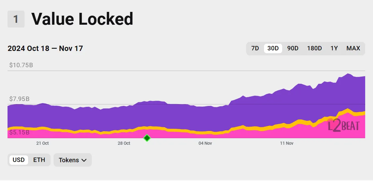 Sự tăng trưởng nhanh chóng của Base không có gì ngạc nhiên. Mạng lưới này không mất quá nhiều thời gian để trở thành giải pháp Ethereum Layer-2 phát triển mạnh mẽ nhất, vượt qua các đối thủ như Optimism và Arbitrum. Theo một báo cáo gần đây của CoinGecko, Base đã được xếp hạng là blockchain phổ biến thứ hai vào năm 2024, thu hút sự quan tâm gấp chín lần so với Arbitrum, đối thủ Layer-2 gần nhất.