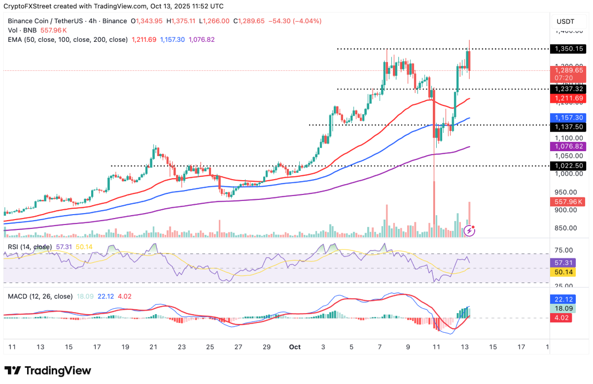 Trong thời gian tới, các trader nên theo dõi chặt chẽ mức đóng cửa hàng ngày trên 1.300 USD — ngưỡng được xem là mấu chốt để xác nhận xu hướng tăng vẫn được duy trì. Tuy nhiên, hoạt động chốt lời có thể còn tiếp diễn trong ngắn hạn. Về phía giảm, các ngưỡng hỗ trợ quan trọng gồm đường EMA 50 ngày tại 1.211 USD, EMA 100 ngày tại 1.157 USD và EMA 200 ngày ở 1.076 USD — đều có thể đóng vai trò là “lá chắn” tạm thời cho BNB trước áp lực điều chỉnh.