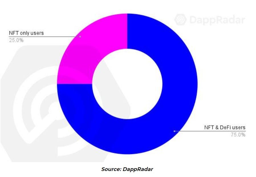 Số lượng người dùng chỉ NFT (hồng) và người dùng NFT&DeFi (xanh) | Nguồn: Dappradar