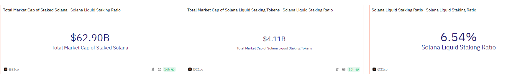 Dữ liệu từ Dune Analytics cho thấy hơn 4 tỷ SOL token hiện đang được stake thông qua các nền tảng liquid staking. Tuy nhiên, con số này chỉ chiếm khoảng 7% tổng vốn hóa thị trường của các token Solana đang được stake, ở mức 62 tỷ đô la vào thời điểm bài viết này được đăng.