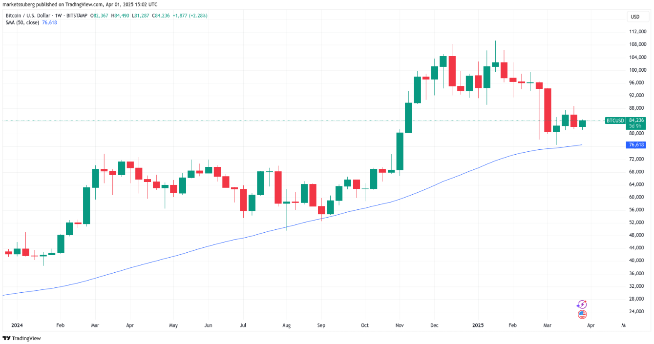 Bitcoin tiếp tục biến động mạnh trong phiên mở cửa Phố Wall ngày 1 tháng 4 khi những lo ngại về thuế quan thương mại của Mỹ khiến thị trường trở nên bất an.