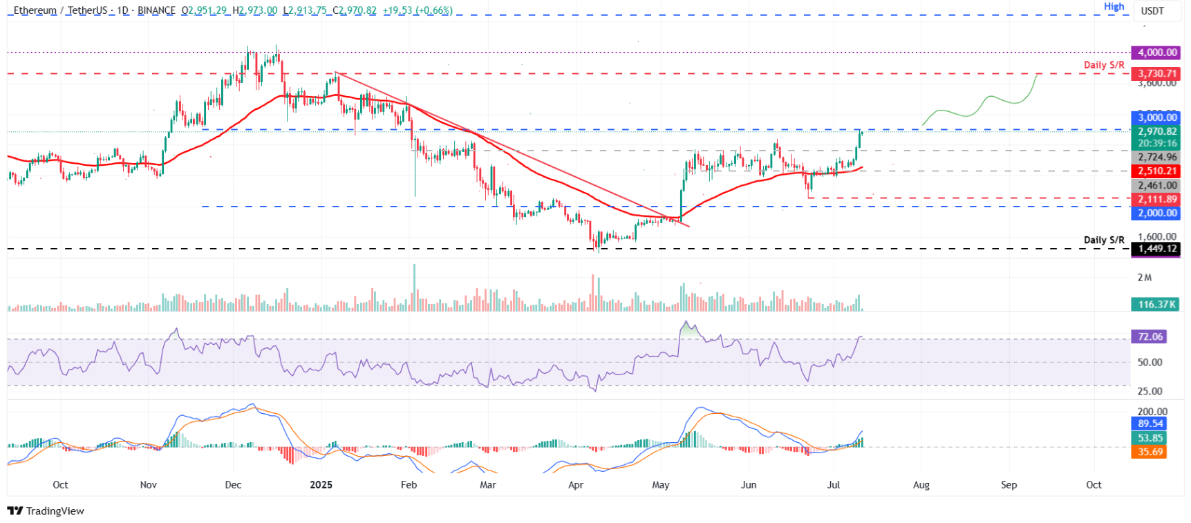 Nếu có thể đóng cửa trên mức $3.000 trong ngày, Ethereum nhiều khả năng sẽ mở rộng biên độ tăng, hướng đến vùng kháng cự tiếp theo tại $3.730.