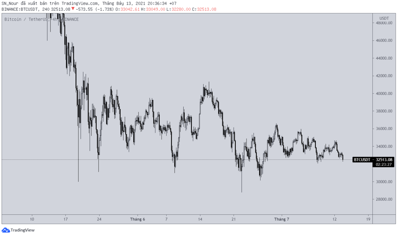 Bitcoin có thể kiểm tra lại mức thấp nhất của phạm vi hiện tại khi giá của nó có xu hướng giảm. Tại thời điểm viết bài, BTC đang giao dịch ở mức $ 32.513 với mức giảm 3,3% trong biểu đồ hàng ngày. Nhiều trader đang hỏi liệu mức này có được giữ hay không khi phe bò dường như đang thiếu niềm tin vào các khung thời gian thấp hơn.