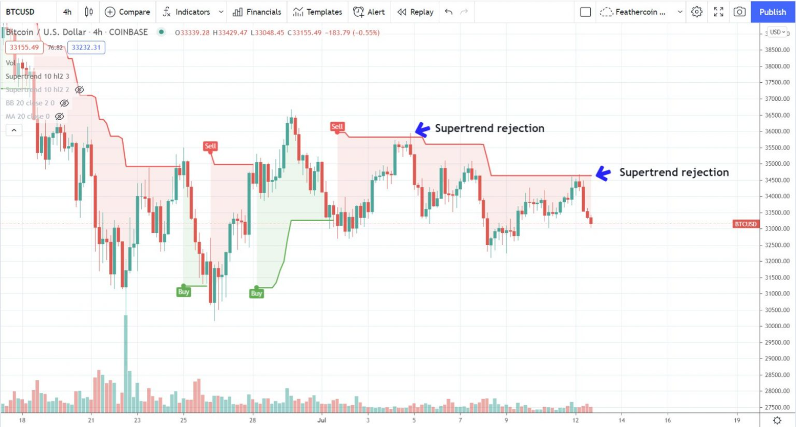 “Lần thứ hai Bitcoin bị từ chối bởi Supertrend (khung 4h). Với khối lượng giao dịch và độ biến động thấp, nó thường có xu hướng có xu hướng giảm. Khối lượng và biến động cao thường có lợi cho việc tăng giá”.