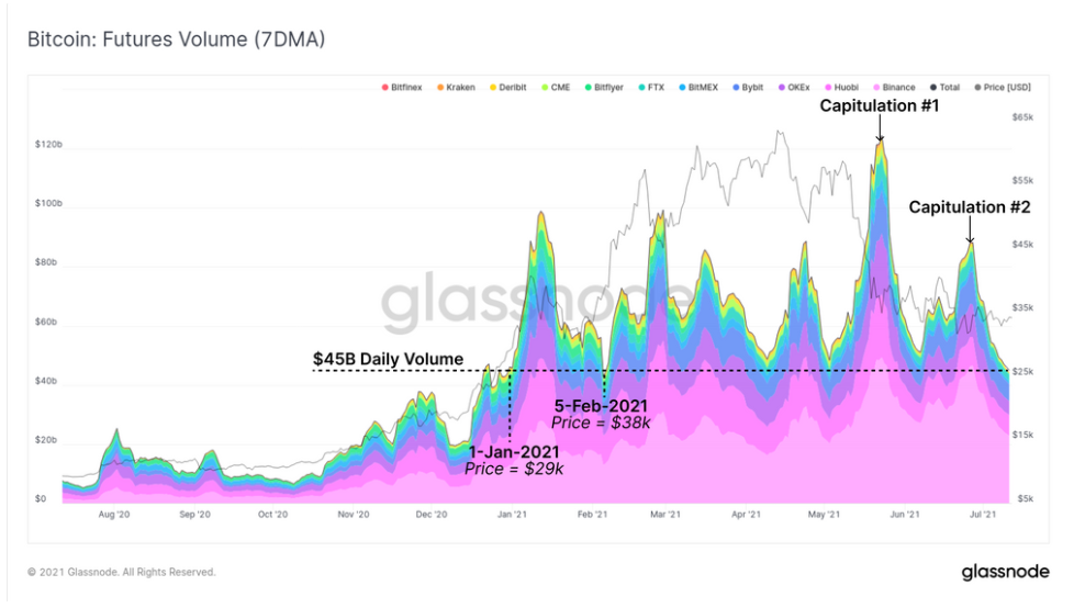 Kể từ đợt bán tháo vào tháng 5, hợp đồng mở của hợp đồng tương lai vẫn bị ràng buộc trong khoảng từ 10,7 tỷ đô la đến 13 tỷ đô la với chỉ một số ít các đợt tăng hoặc giảm đáng chú ý trong phạm vi đó. Hợp đồng mở vẫn thấp hơn 57% so với ATH được thiết lập vào tháng 4 khi Coinbase được niêm yết công khai.