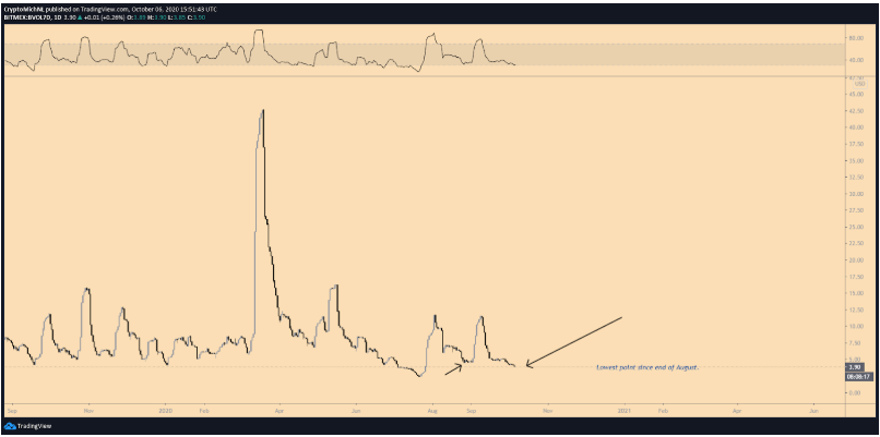 Miễn là giá Bitcoin vẫn nằm dưới vùng kháng cự này, thì một động thái tăng giá mạnh là rất khó. Tuy nhiên, sự biến động của Bitcoin đã dần biến mất.