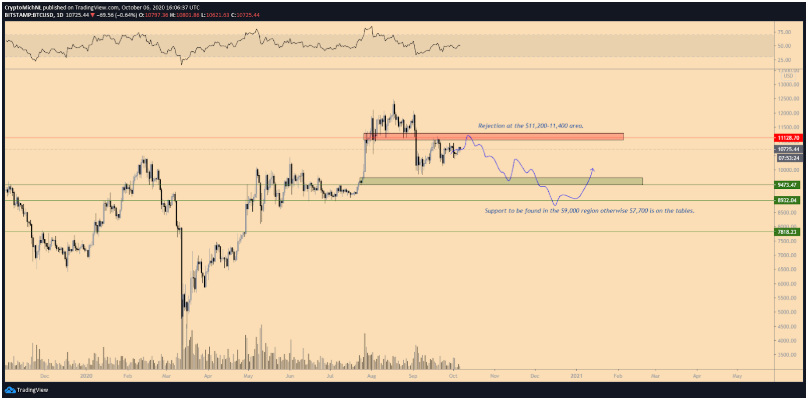 Nếu giá bật lên mạnh mẽ từ các khu vực này thì có thể dự đoán rằng sự điều chỉnh đã kết thúc. Nếu đúng như vậy, năm 2021 có thể là một năm rất lạc quan đối với toàn bộ thị trường tiền điện tử.