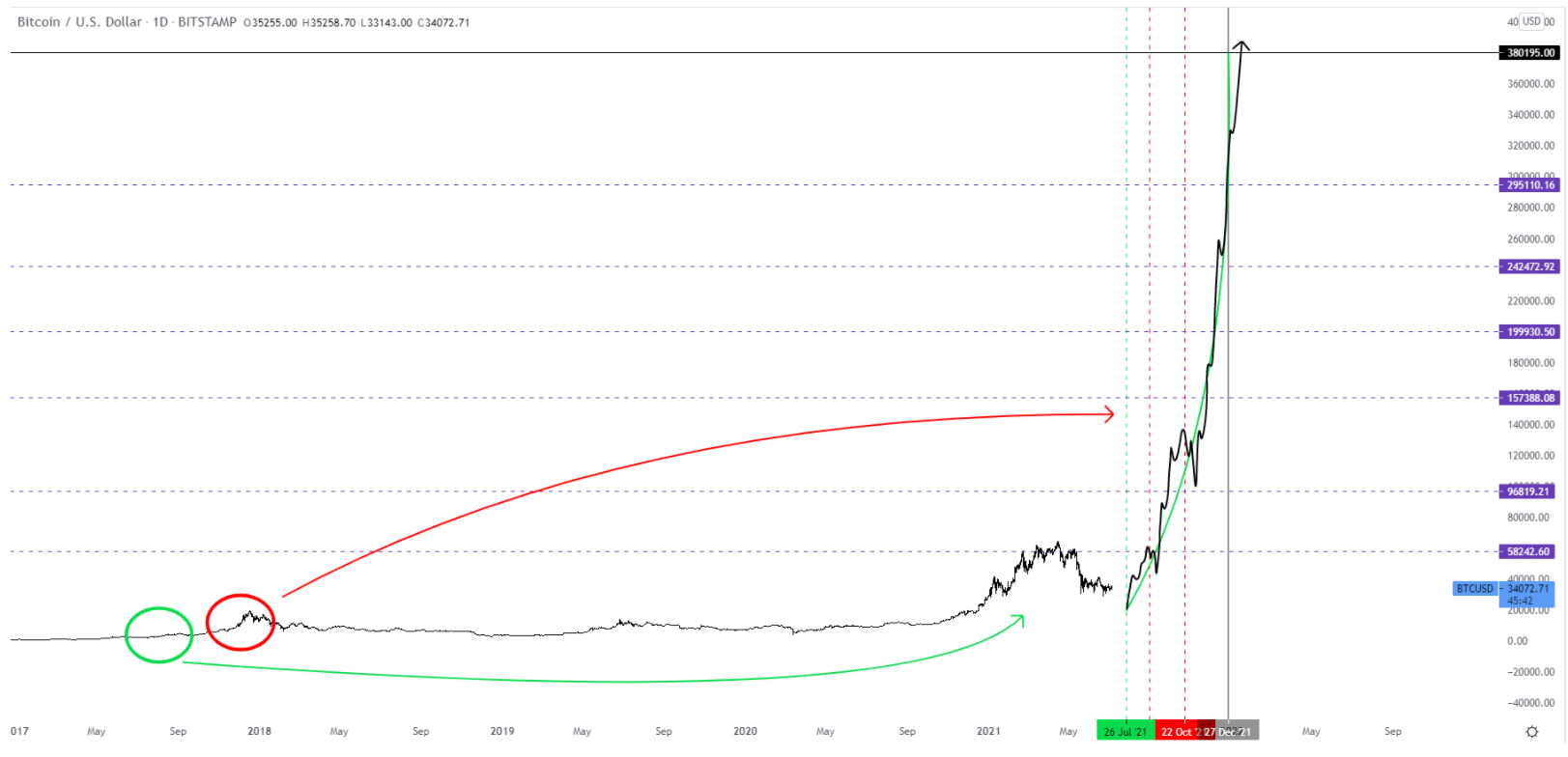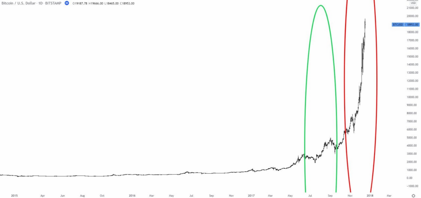 Biểu đồ BTC/USD trong chu kỳ tăng giá 2017 | Nguồn: Jack Sparrow/Twitter