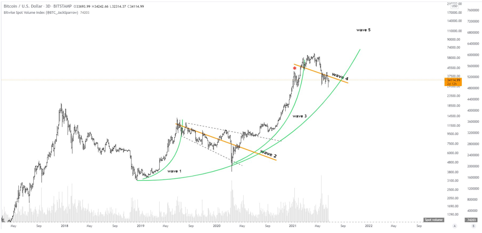 Biểu đồ BTC/USD khung 3 ngày | Nguồn: Jack Sparrow/Twitter