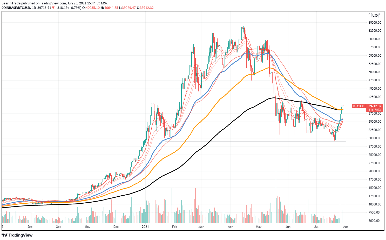 Vào thời điểm báo chí, Bitcoin vẫn đang củng cố quanh mức 40.000 đô la mà không thực hiện thêm bất kỳ chuyển động đáng chú ý nào theo cả hai hướng. Bitcoin đã thành công vượt qua ngưỡng kháng cự mạnh trên biểu đồ, mức trung bình động 200 ngày đã được kiểm tra hai lần trong vòng hai ngày qua.