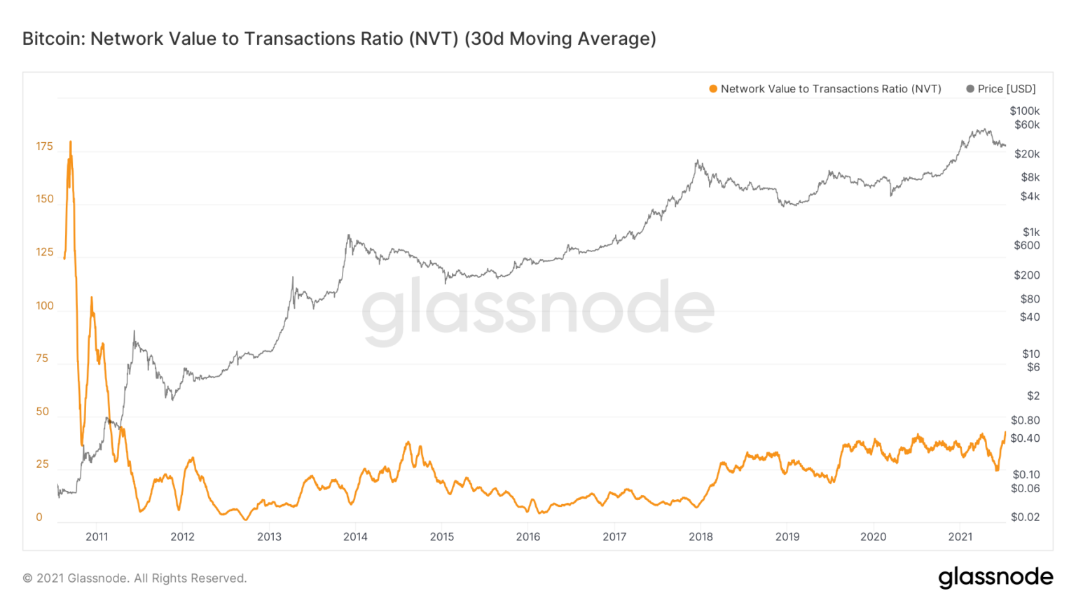 Vào ngày hôm qua, chỉ báo này đã chạm mức ATH 9 năm tại 42,6. Mặc dù nghe có vẻ tích cực nhưng tỷ lệ NVT thường là dấu hiệu đảo ngược xu hướng trong tương lai. Trước đây, mức cao như vậy đã dẫn đến giá giảm mạnh không kém trên biểu đồ.