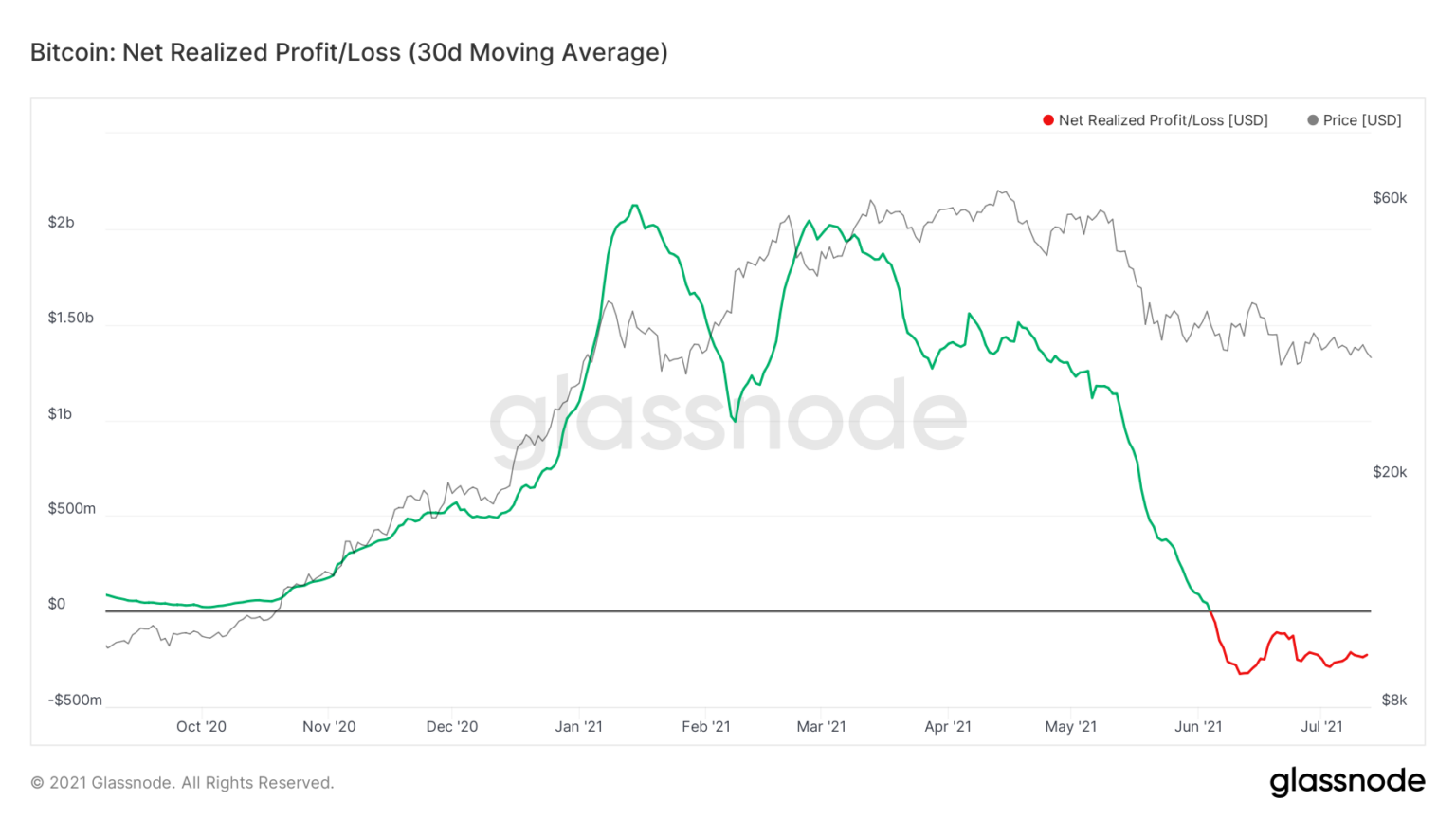 Biểu đồ lãi/lỗ thực ròng cũng cho thấy các khoản lỗ đang chiếm ưu thế. Chuyển động của chỉ báo vẫn gần với mức thấp nhất mọi thời đại vào ngày 12/6. Điều này nói lên rất nhiều về điều kiện thị trường hiện nay. Cho đến khi đường này chuyển sang màu xanh, lợi nhuận có vẻ là câu chuyện xa vời.