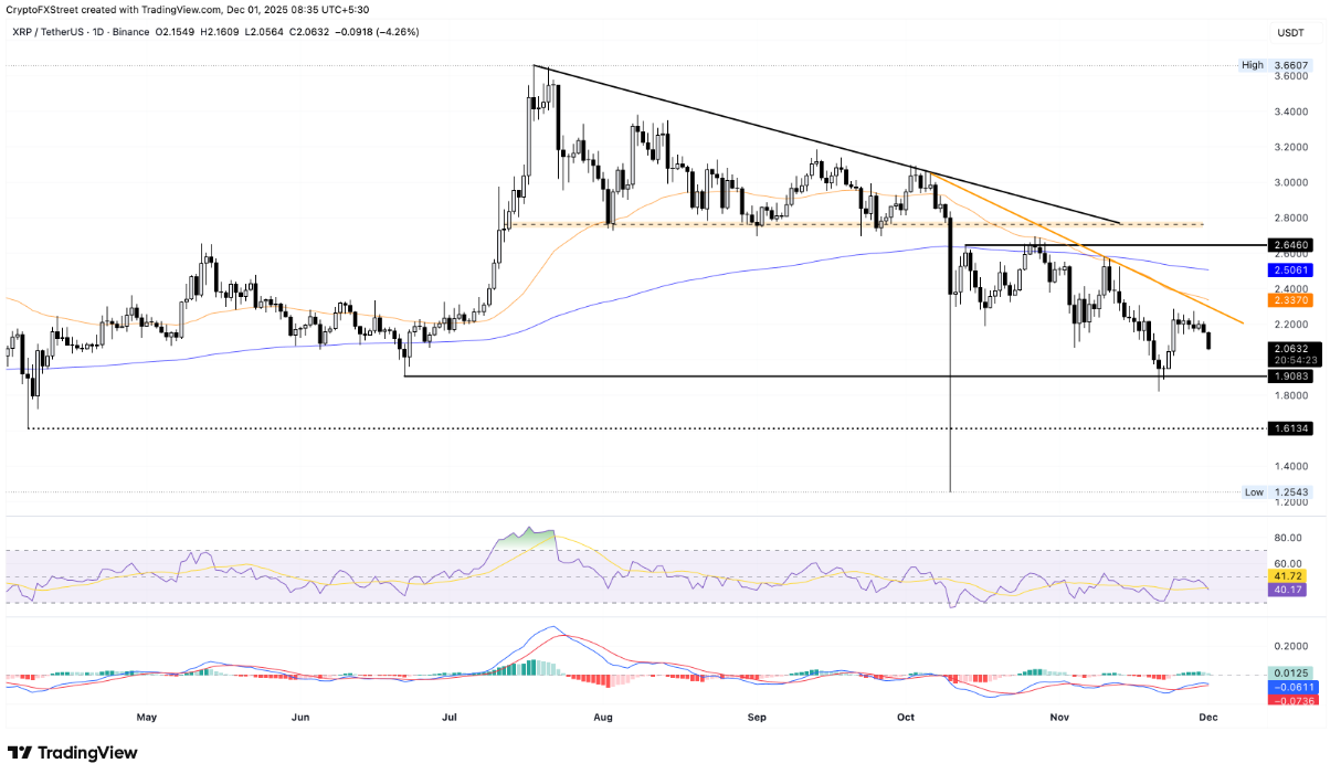 Tuy nhiên, nếu phe bò bảo vệ thành công mốc $2,00, XRP vẫn có cơ hội hồi phục lên đường kháng cự nối các đỉnh ngày 6/10 và 10/11, quanh mức $2,20, mở ra kỳ vọng về một nhịp phục hồi ngắn hạn.
