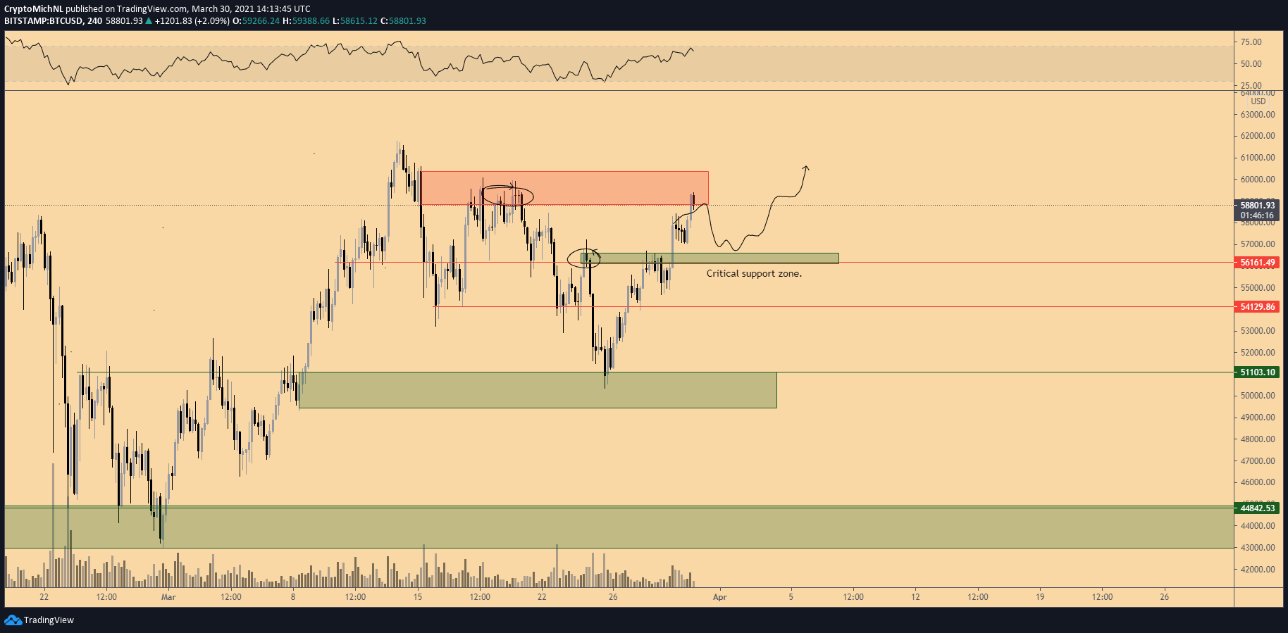 Như biểu đồ trên cho thấy, vùng hỗ trợ quan trọng giữa 49.500 và 51.000 đô la vừa mới được thử nghiệm vào tuần trước. Kể từ khi vùng hỗ trợ được giữ vững, đáy khác cao hơn đã được tạo ra, dẫn đến động lực đi lên mới và đang diễn ra trong thời gian này.